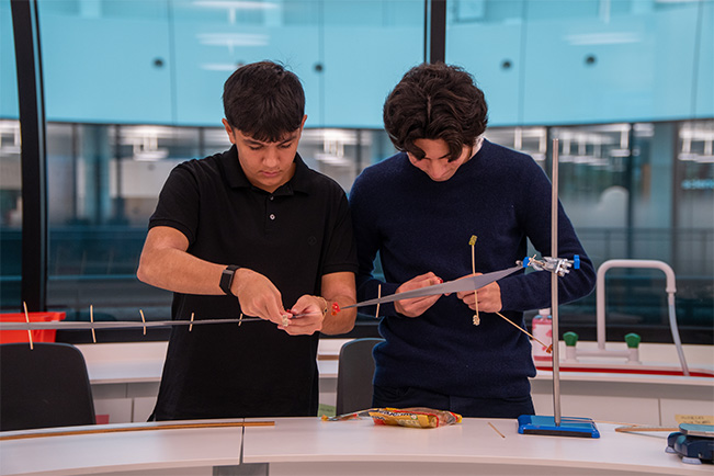 Roséens built their own wave makers to explore how energy moves through a medium. Using skewers, tape, and gummy bears, each team created a simple model of oscillation and observed amplitude, wavelength, and frequency in real time. [vc_row row_type="row" use_row_as_full_screen_section="no" type="full_width" angled_section="no" text_align="center" background_image_as_pattern="without_pattern" css_animation=""][vc_column][vc_separator...