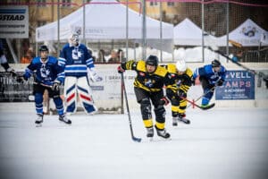 An epic hockey showdown between Roséens and Anciens on the rink! With passionate fans cheering them on, both teams displayed extraordinary skills throughout the game.