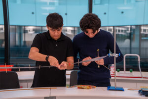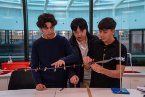 Roséens built their own wave makers to explore how energy moves through a medium. Using skewers, tape, and gummy bears, each team created a simple model of oscillation and observed amplitude, wavelength, and frequency in real time.
